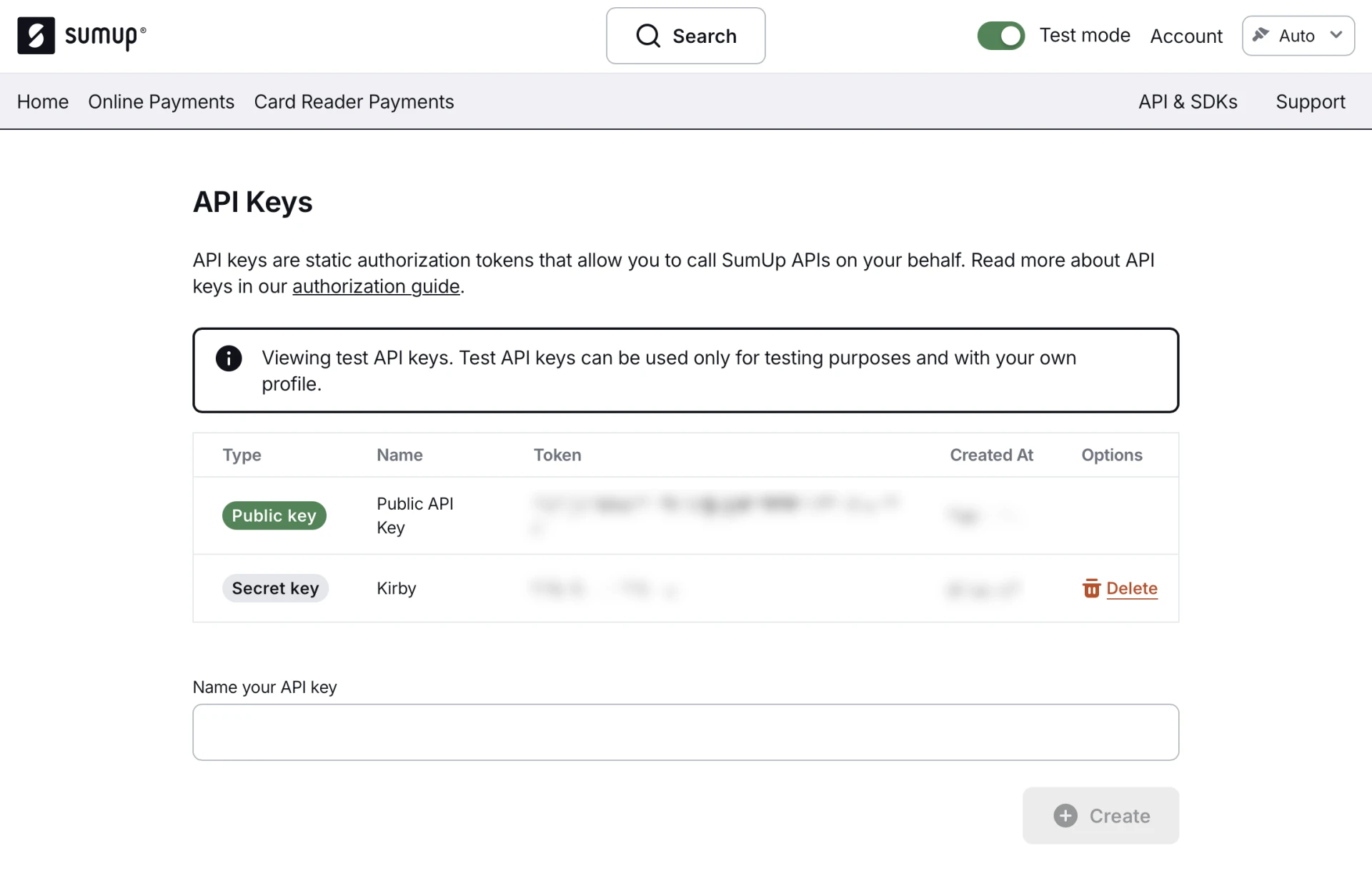 SumUp has no hosted checkout thus their JS library is used as described below.